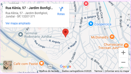 Estamos localizados na cidade de Jundiaí, na Rua Kênia, 57 – Jardim Bonfiglioli – SP, cep 13207-371. Email:wilson@cleanthoughts.com.br Contato: Cel – +5511 92018-7527. Dúvidas entre em contato por um de nossos canais.